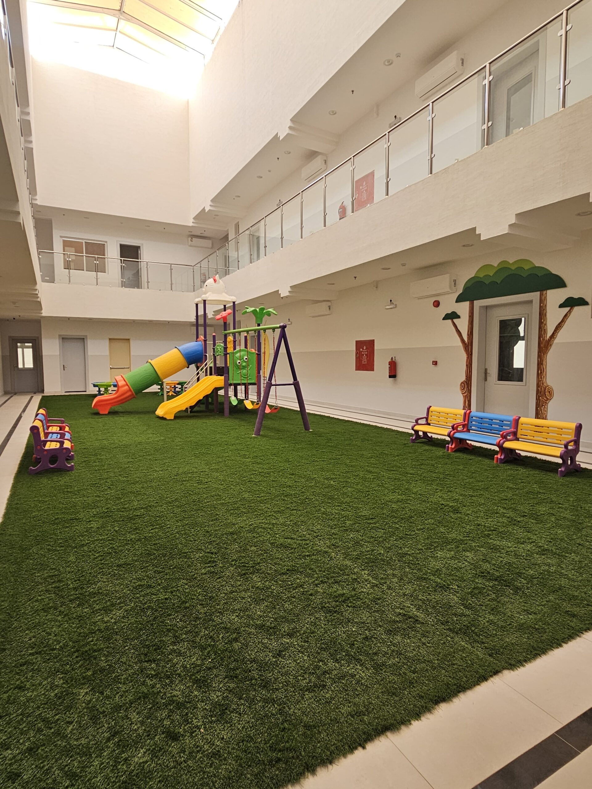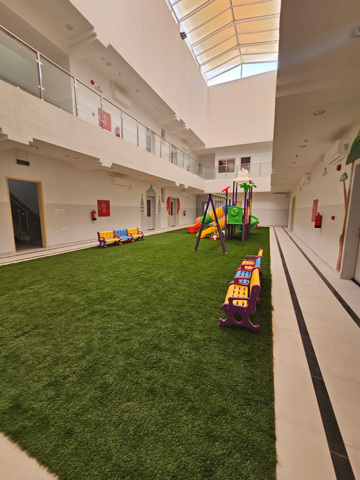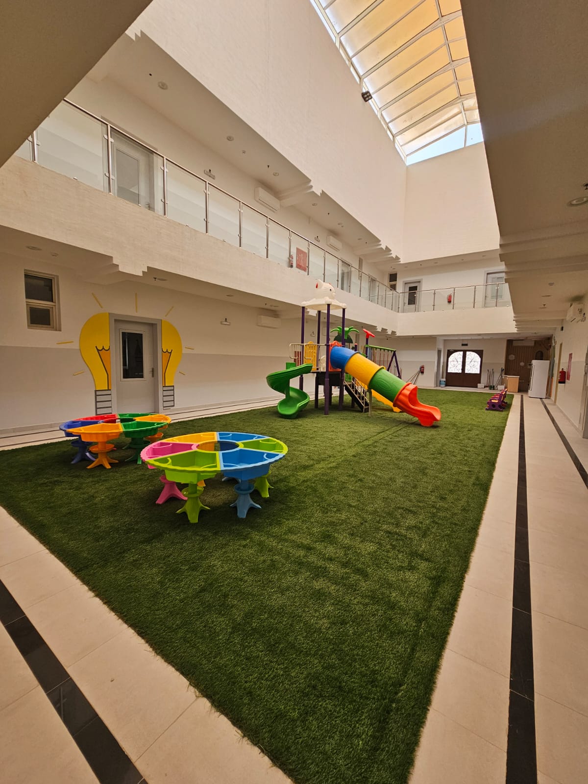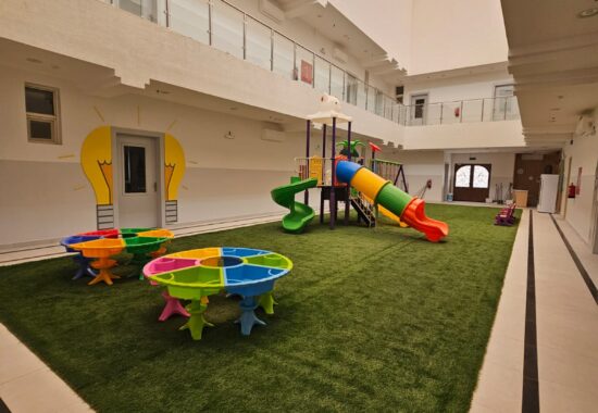 بيئة تعليمية آمنة وصحية، مجهزة لتحفيز الإبداع والاستكشاف، مع الاهتمام بأعلى معايير النظافة والسلامة.