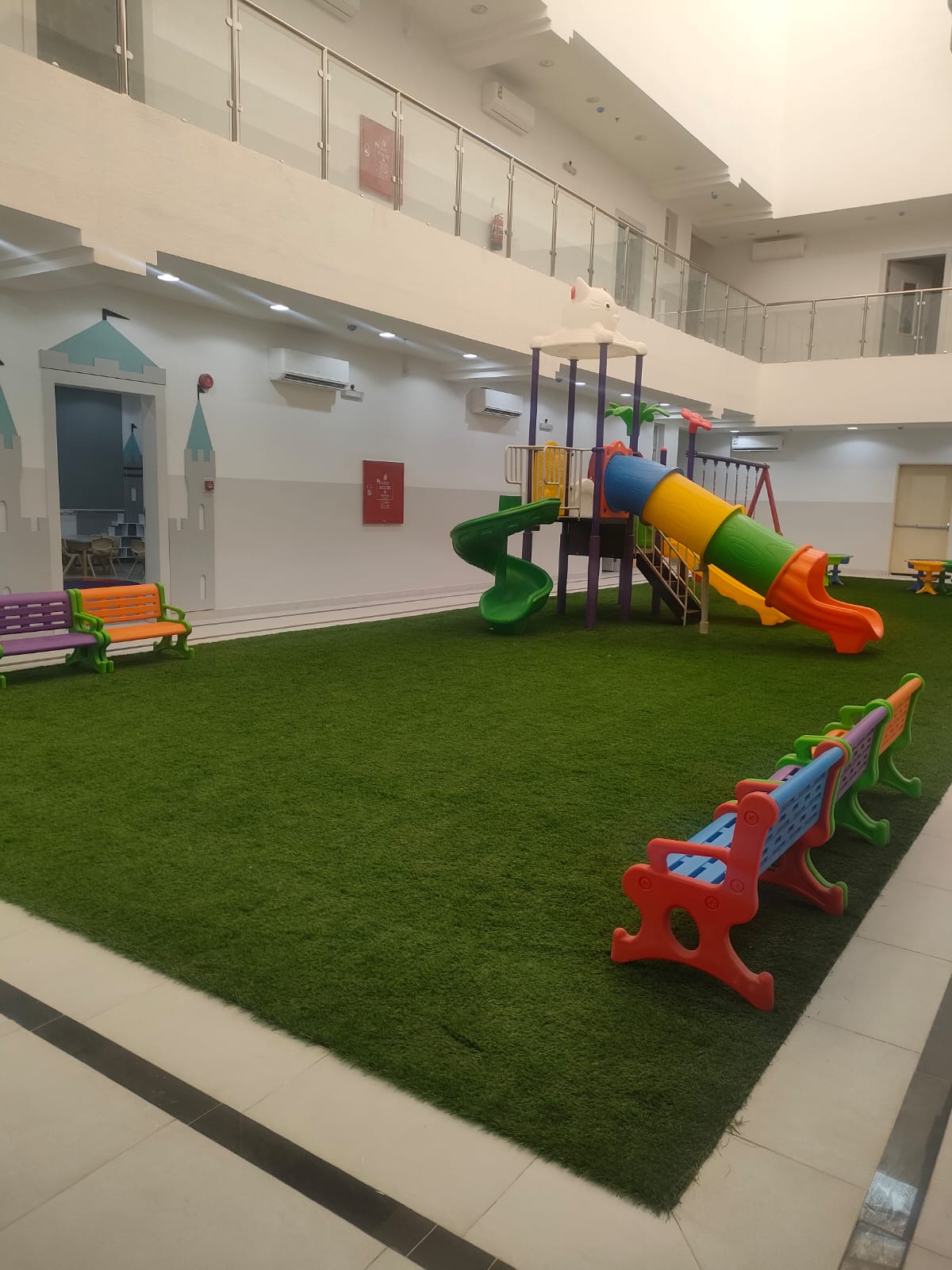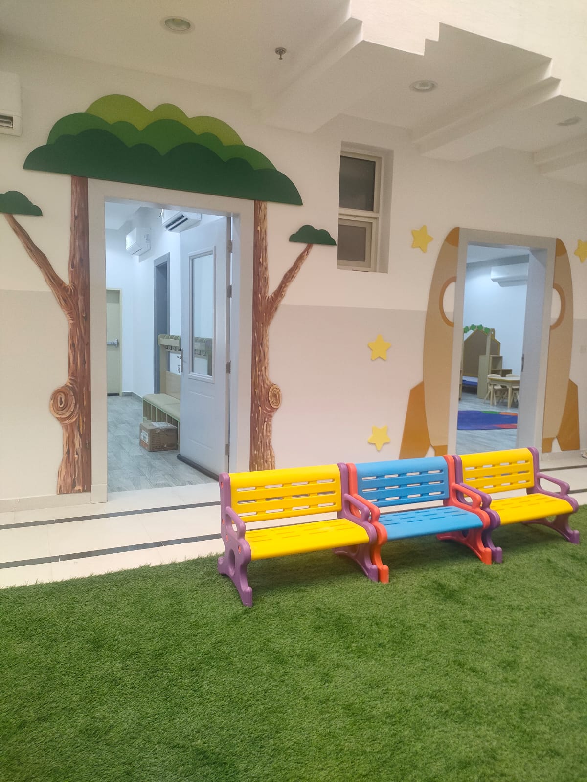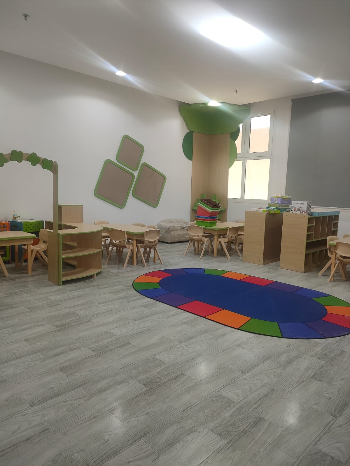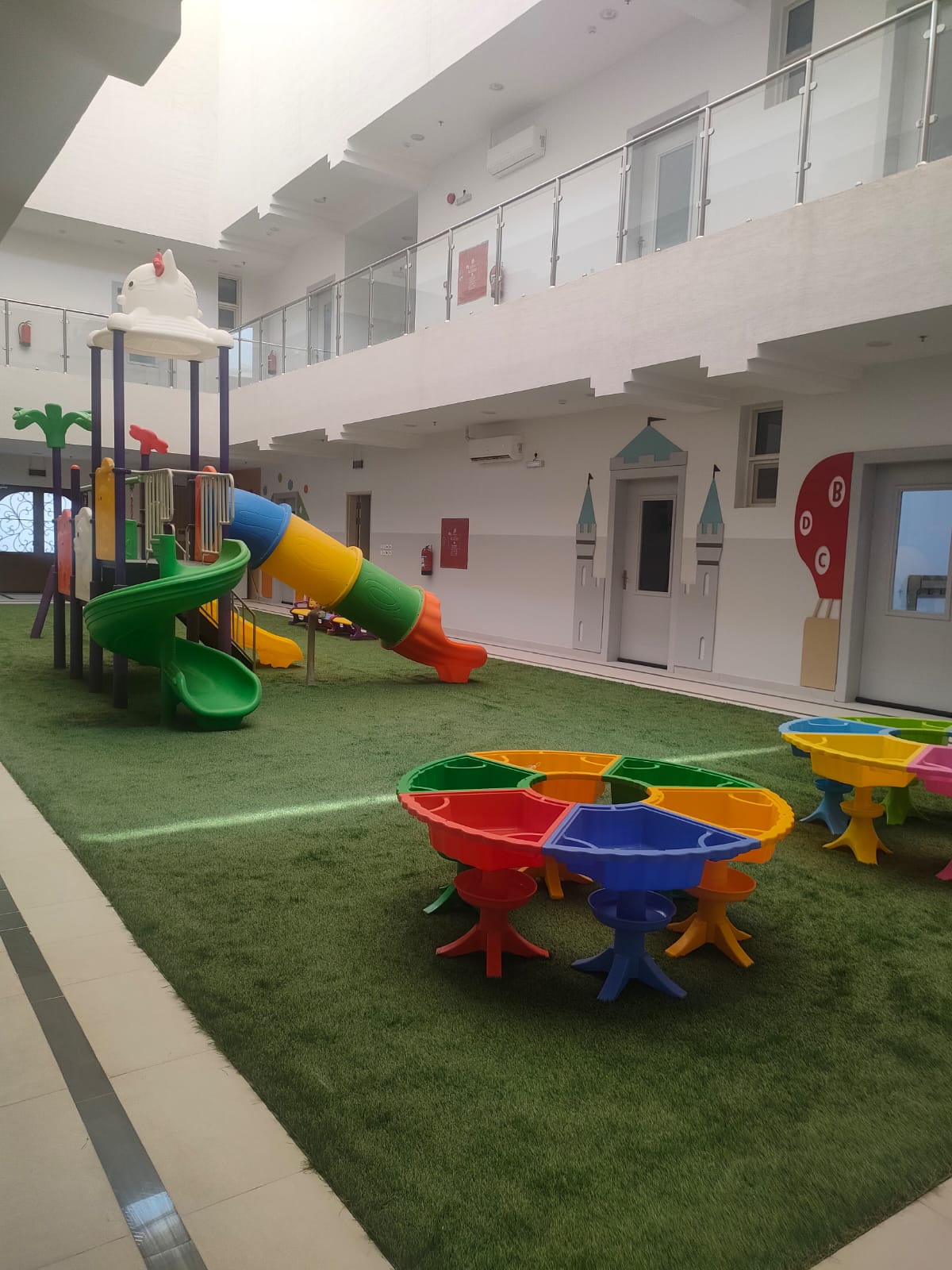 بيئة تعليمية آمنة وصحية، مجهزة لتحفيز الإبداع والاستكشاف، مع الاهتمام بأعلى معايير النظافة والسلامة.
